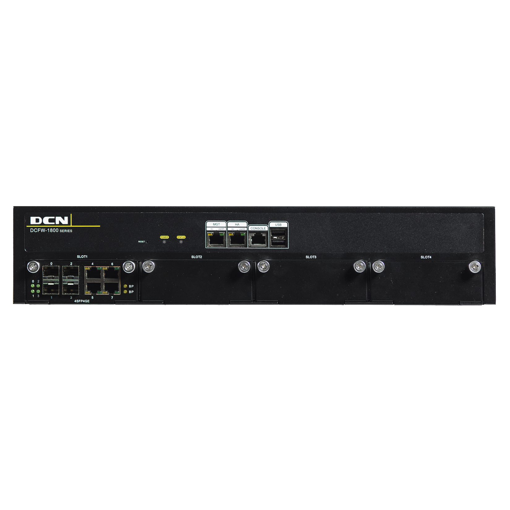 DCFW-1800E-X8430 DCFW-1800E-X8430 下一代防火墙。物理参数:最大可扩展至32个千兆接口,16个万兆接口。标准带4个10/100/1000M以太网电口+4个千兆SFP接口(占一个槽位),1个HA接口,1个管理口,4个Slot插槽,1T硬盘,热插拔双电源冗余设计;2U标准机箱。