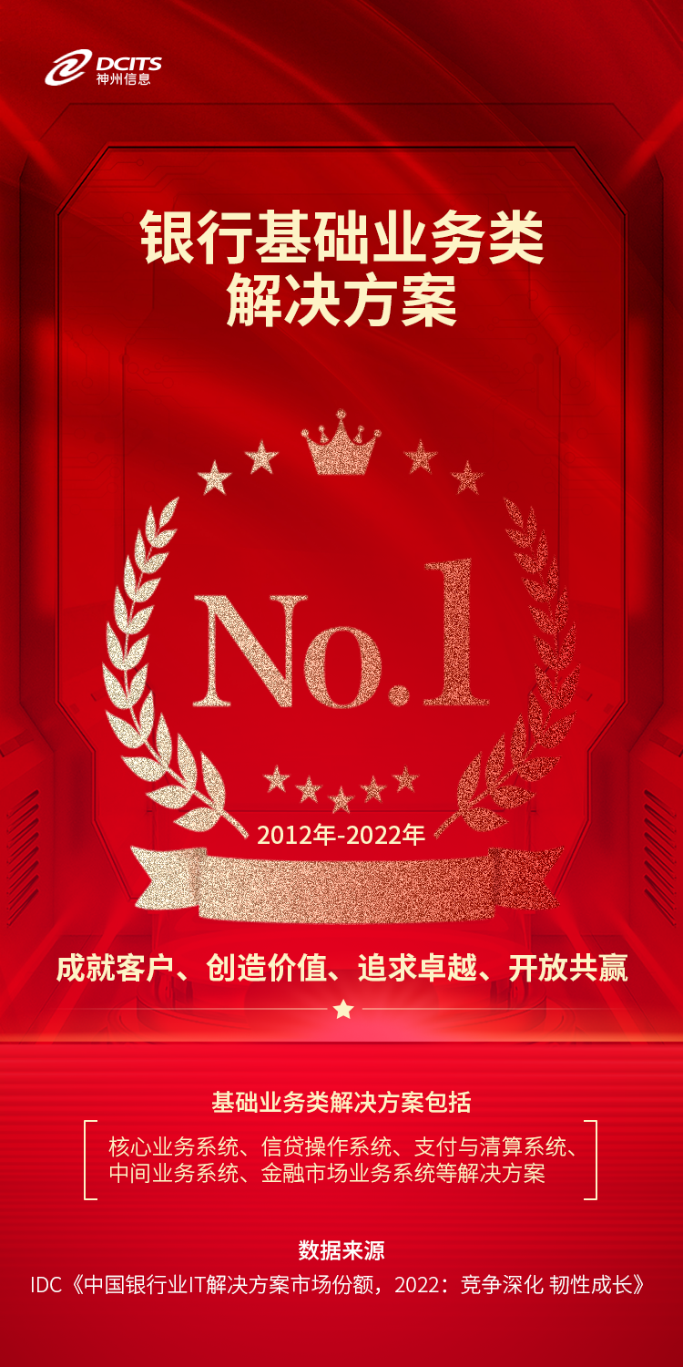 7月13日,IDC 正式发布《中国银行业IT解决方案市场份额,2022:竞争深化 韧性成长》报告,凯发k8国际信息凭借雄厚的金融数字化实力再次豪取多项市场第一。