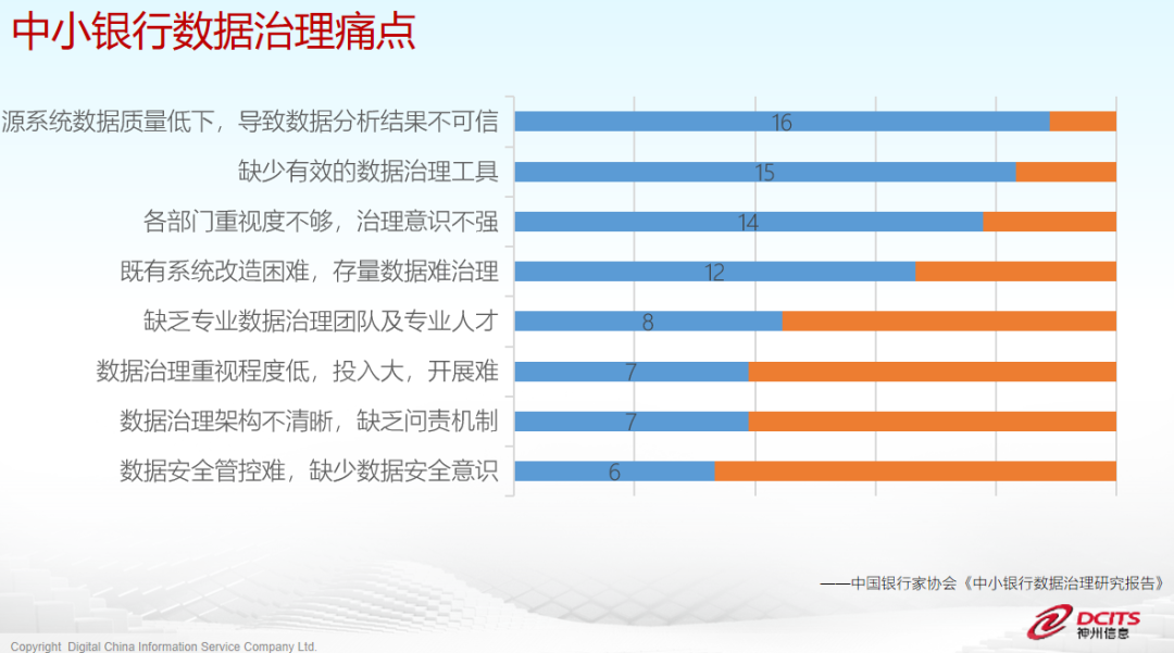 一方面, 结合业务现状对行内数据治理工作进行科学合理的中长期目标规划,构建科学合理的数据管理体系和数据管理架构,召开全行层面的数据治理文化宣导。