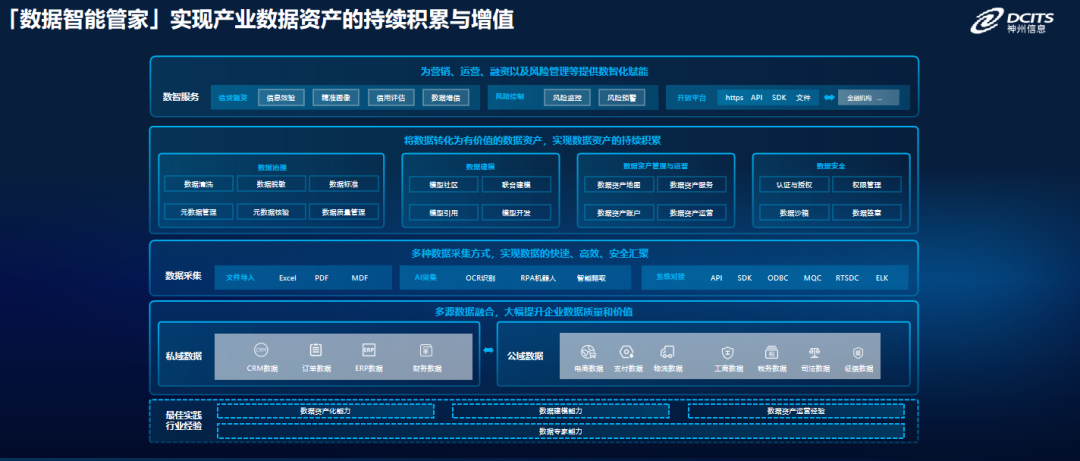 产融DaaS沉淀了国际领先的数据治理能力、数据建模能力、数据资产化及运营能力以及在产业和金融组织的最佳实践,实现服务领先;