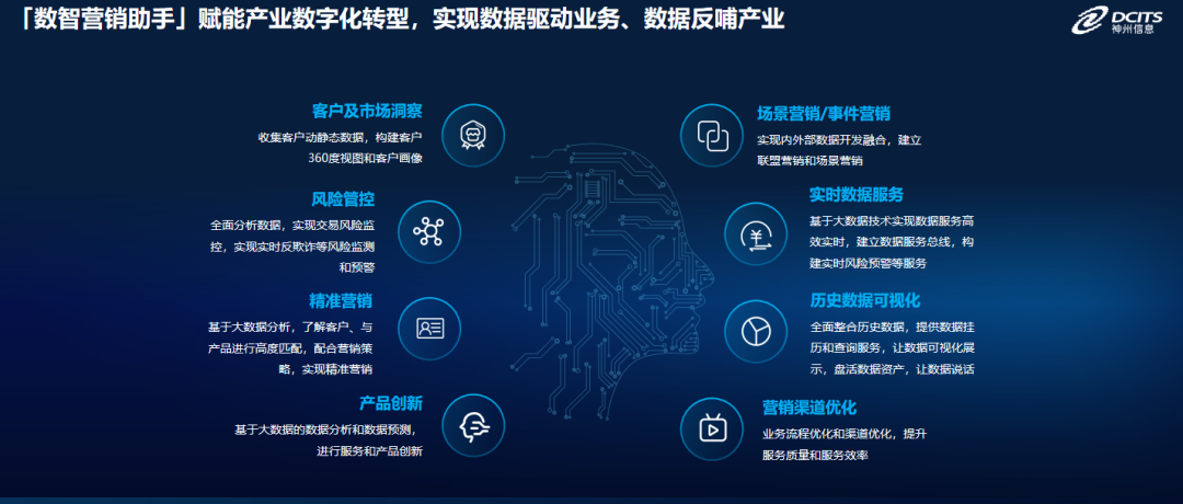 「数智营销助手」主要实现赋能产业数字化转型,实现数据驱动业务、数据反哺产业。